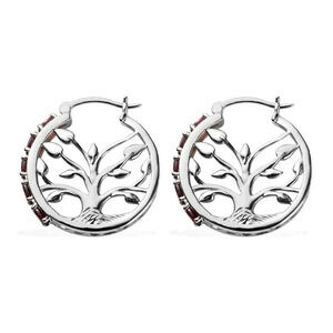 Natural Anthill Garnet Hoop Earrings In Platinum Over 925 Sterling Silver.