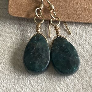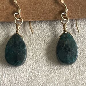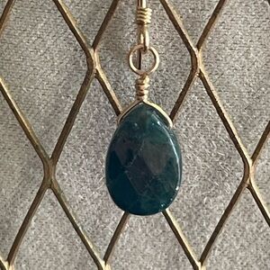 These elegant handmade earrings feature natural deep teal-blue apatite gemstones in a smooth teardrop shape, wire-wrapped in genuine sterling silver. Their rich color and classic design make them a stunning yet subtle addition to any outfit.