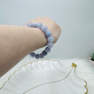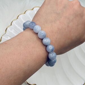 New 10mm Beaded Bracelet features a gorgeous light sky blue color with touches of cloud