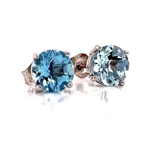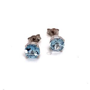 Natural Finely Faceted Quality Aquamarine Stud Earrings 14k White Gold 1.3 CTW Certified $950 113470