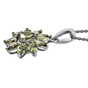 Natural Arizona Peridot Floral Pendant ✦ 925 Platinum Over Sterling Silver ✦ 20"