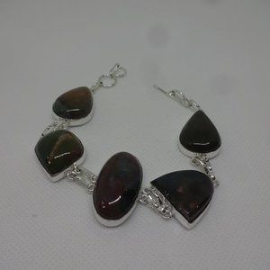 Natural "BLOODSTONE AGATE" Handmade Sterling Bracelet 8" #209