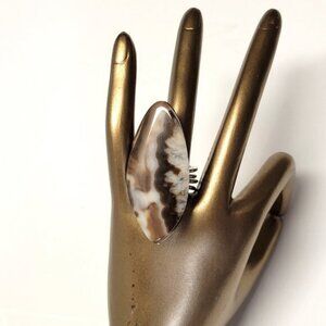 Natural Banded Agate Onyx Cabochon Adjustable Band Handmade Semi Precious Ring