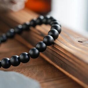 Natural Black Onyx Beaded Stretch Bracelet Meaningful Boho Stone New