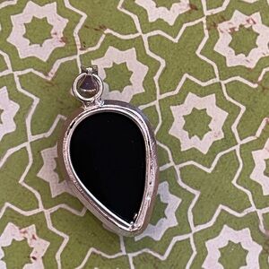Natural Black Onyx Teardrop Sterling Silver Plated Pendant โ Brand New