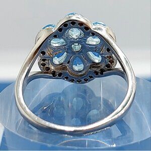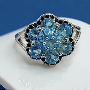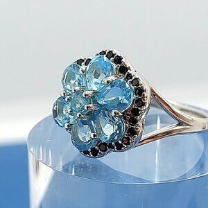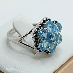 Natural Blue Apatite 5x4mm & Black Spinel 925 Sterling Silver Ring Size 7