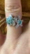 This gorgeous starfish and turtle ring is made with all genuine, earth mined gemstones. The blue stones are genuine apatite, and the clear stones are white zircons. The gemstone carat weight total on the ring is 1.00. The ring is set in solid .925 sterling silver with a rhodium plate to prevent tarnishing. The ring in the photos is the actual one you will receive, so please see photos for gemstone quality and measurements. Size 7.