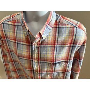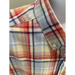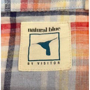 Natural Blue By Visitor Mens Long Sleeve Plaid Linen Cotton Shirt XL. Colors in photos are more vivid than actual shirt. In very good condition. A47628233PM