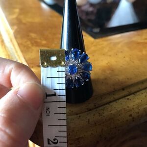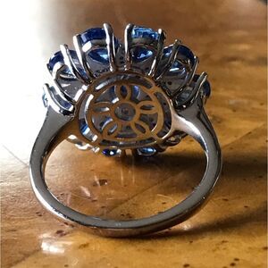 This stunning ring features 6.15 ctw of completely natural blue kyanite mined in Kashmir. The stones have not been dyed, heated, or treated in anyway. They are so beautiful just the way they are, mined from earth and only polished for the ring! The ring also has natural white zircon accents that are untreated as well. The ring is set in solid .925 sterling silver with a rhodium plate to prevent tarnishing. The ring in the photos is the actual one you will receive, so please see photos for gemstone quality as well as measurements. Size 10.