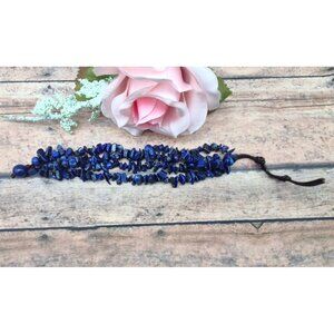 Natural Blue Lapis Chip Stone Muti Strand Bracelet Boho Hippie Nature Lover