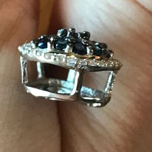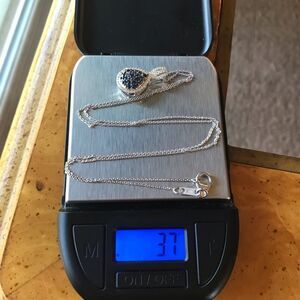 This stunning necklace features all genuine, earth mined stones. The blue stones are sapphires (heated) mined from Thailand. The clear stones are completely natural, earth mined white zircons. The necklace and 20” chain are both set in solid .925 sterling silver with a platinum plate to prevent tarnishing. The necklace in the photos is the actual one you will receive, so please see photos for gemstone quality and measurements.