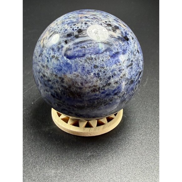 Natural Blue Sodalite Sphere 69mm 470g Healing Crystal Stone w/Stand