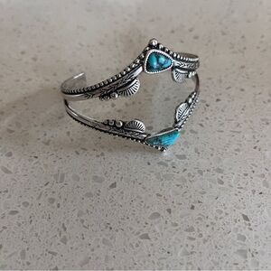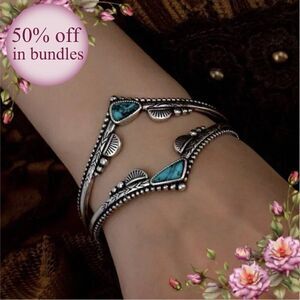 Natural Blue Turquoise Stone Decor Western Metal Cuff Bangle Bracelet