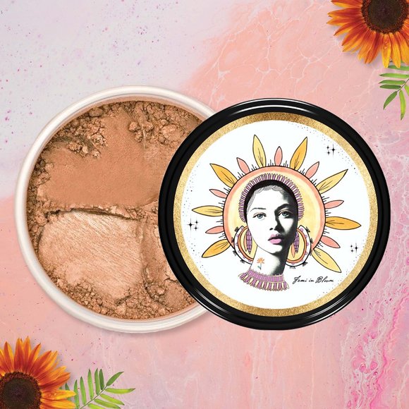 A beautiful soft natural finish mineral bronzing powder that gives a light golden bronze shimmer glow. You may also sweep the bronzer anywhere on your body for a pretty summer look glow. 100% Natural Ingredients.