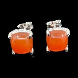 Gorgeous Carnelian stud earrings are prong set in solid 925 Sterling silver basket settings and have butterfly backs. Handmade.