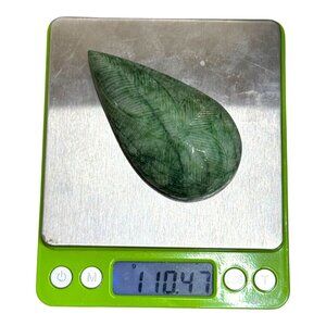 This exquisite carved gemstone offers a unique blend of natural beauty and artistry. Its rich green hues and intricate leaf patterns enhance its allure, making it an ideal centerpiece for jewelry design or collection. A remarkable fusion of elegance and nature awaits you.