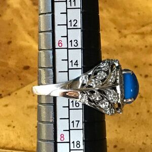 This unique tree design ring is made with natural, earth mined stones. The stones additionally have not been treated in any way, only polished for jewelry. The center stone is a 9x7mm ceruleite stone. The accent stones that create the leaves on the side of the band and also surround the ceruleite are natural white zircons. The ring is set in solid .925 sterling silver with a rhodium plate to prevent tarnishing. The ring in the photos is the actual one you will receive, so please see photos for gemstone quality and measurements. Size 7.