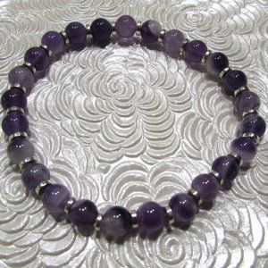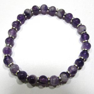 Natural Chevron Amethyst Gemstone Stretch Bracelet