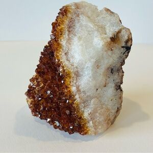 Enhance your space with this stunning natural citrine crystal cluster. Its rich brown and cream hues add a touch of elegance to any decor.