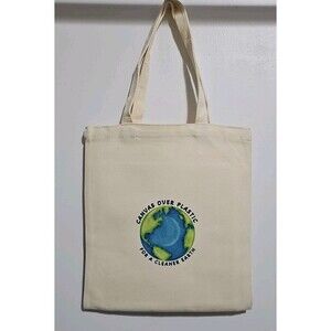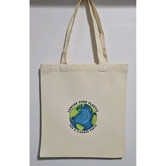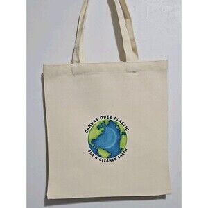 Natural Color Canvas Tote Bag Eco-Friendly Shopper "Canvas Over Plastic for a clearance Earth"
