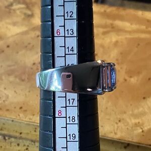 This ring features all earth mined stones; nothing is lab created. The centerpiece is an 8x8 mm color changing fluorite stone. In indirect sunlight, the stone is a beautiful blue. In incandescent lighting, it changes to purple. The first two photos show the color change. The ring also has earth mined white zircon accents. The total carat weight on the ring is 3.10. The ring is set in solid .925 sterling silver with a rhodium plate to prevent tarnishing. Please see photos for gemstone quality and measurements. Size 7.