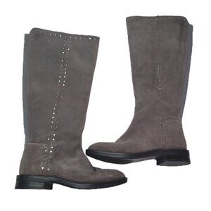 Natural Comfort by Steve Madden Gray Suede Zoe Riding Boot Stud Detail Size 7W