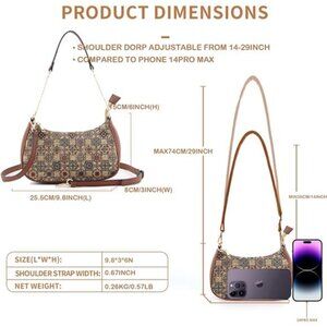 Portable Size: 9.06x3.15x5.12 inches (L x W x H), N.W: 0.55 lbs. This underarm bag is very light for women work and everyday use, making your heavy life easier