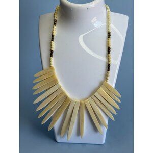 Natural Cow Bone Beaded Tribal-Inspired Necklace With Pointed Pendant Design & A