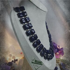 Natural Deep Blue Lapis Lazuli 12mm Flat Square Double Strand Necklace 14 Ct. Go