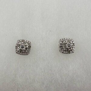 Natural Diamond Cushion Cut Stud Earrings in Sterling Silver