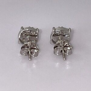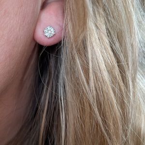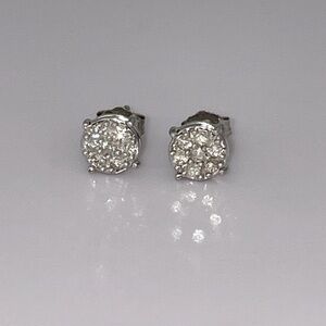 Natural Diamond Solid 14K White Gold Round Disc Cluster Stud Earrings Unisex