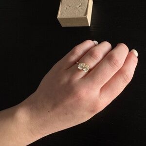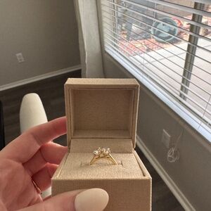 Custom Olive Ave pear and oval engagement ring. 14k yellow gold, 0.75 carat oval and 0.76 carat pear diamond. I have the GIA reports for both stones. Just bought last month, worn maybe twice no scratches or anything. It is under 3 years of warranty and can be extended, free sizing and all that.