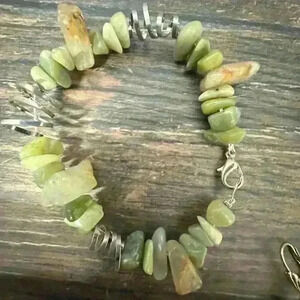 Natural Earthstone Jade Jewelry Set Beaded with silver coils