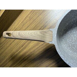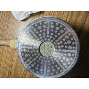This Natural Elements non-stick saucepan features a wood handle and a tempered glass lid, providing durability and style to your kitchen cookware collection.