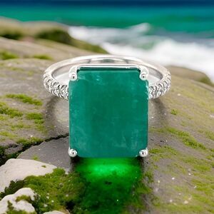 Natural Emerald and Diamond Ring size 6.5 and set in 14k White Gold 8.27 TCW
