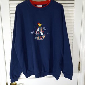 Natural Escape Navy Blue Christmas Tree Sweatshirt Size 2XL Holiday Embroidered