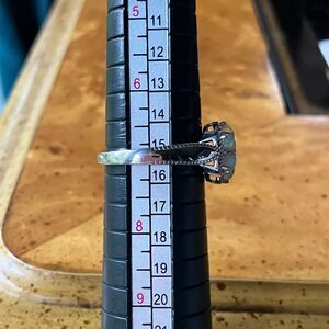 This beautiful ring features completely natural, earth mined opals from Ethiopia. Each opal measures 4x3mm. The ring additionally has an earth mined white zircon accent. Zircons are earth mined gemstones. They are not the same as cubic zirconia, which is man-made. The ring is set in solid .925 sterling silver with a rhodium plate to prevent tarnishing. Size 7.
