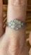 This beautiful ring features completely natural, earth mined opals from Ethiopia. Each opal measures 4x3mm. The ring additionally has an earth mined white zircon accent. Zircons are earth mined gemstones. They are not the same as cubic zirconia, which is man-made. The ring is set in solid .925 sterling silver with a rhodium plate to prevent tarnishing. Size 9.