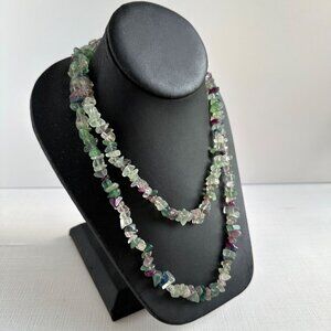 Natural Fluorite Chip Necklace, 35" Long Polished Gemstone Strand, Green & Purpl