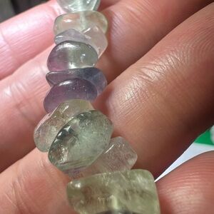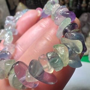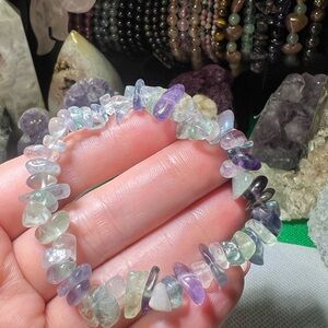 This stunning bracelet features a blend of vibrant gemstones. The multicolor design includes shades of purple, green, and clear.