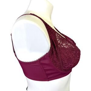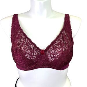 Natural Form Womens Bra Lace Unlined Underwire Burgundy Red Sexy XXXL