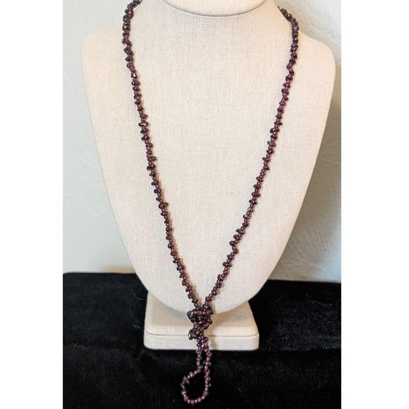 Natural Garnet Chip Bead 34" Necklace. Pre-owned, this garnet necklace is in excellent condition. Unknotted it measures 34". There is so much you can do with these stone chip necklaces. They look lovely as a stand alone piece or layered with other metals and/or stones. I like the petiteness of these stones for a beautiful layering effect. January babies, color of merlot.