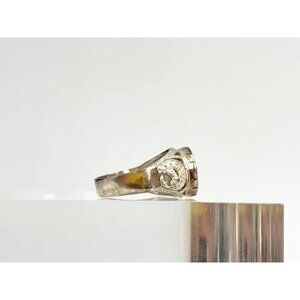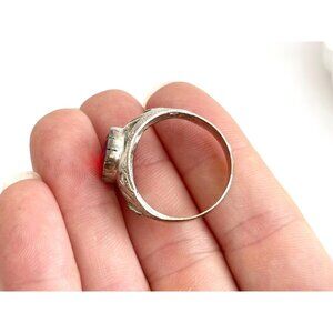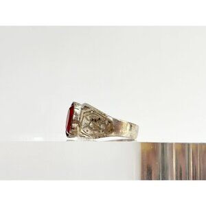 Natural Garnet Oval Cut Gemstone Carved Sterling Silver Vintage Ring - sz 10