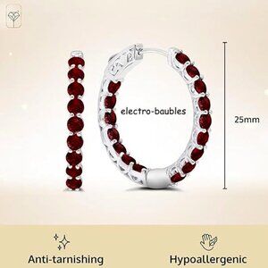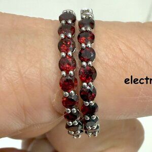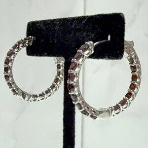 Natural Garnet Sterling Silver Inside Out 1.3 carat Hoops - NEW