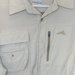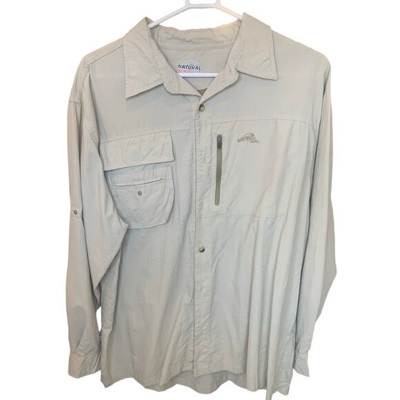 Natural Gear Fishing Shirt XL Khaki Nylon Vented Long / Short Sleeves Mens