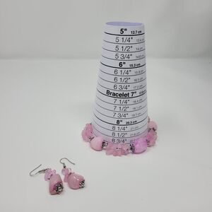 Natural Gem 2pc Set Pink Quartz Drop Earrings Pierced Bracelet Love Healing Gift