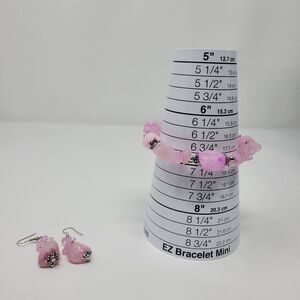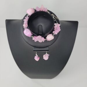 Natural Gem 2pc Set Pink Quartz Drop Earrings Pierced Bracelet Love Healing Gift