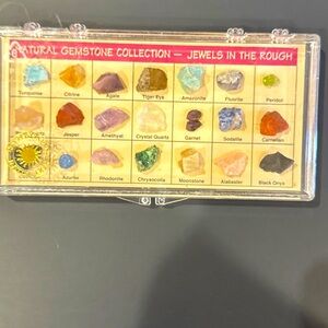 Discover a collection of natural gemstones in this "Jewels In The Rough" set. These gemstones are in their original, unaltered form and have been sourced by the Smithsonian Institute for their aesthetic appeal. The set includes a variety of gemstone types and forms, making it a unique addition to any gemstone collection. Stones include: