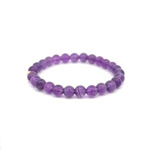 Natural Gemstones Amethyst 6mm Stretchable Bracelet 14k Gold Corrugated Bead