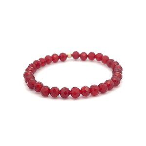Natural Gemstones Carnelian Microfaceted 6mm Stretchable Bracelet 14k Corrugated